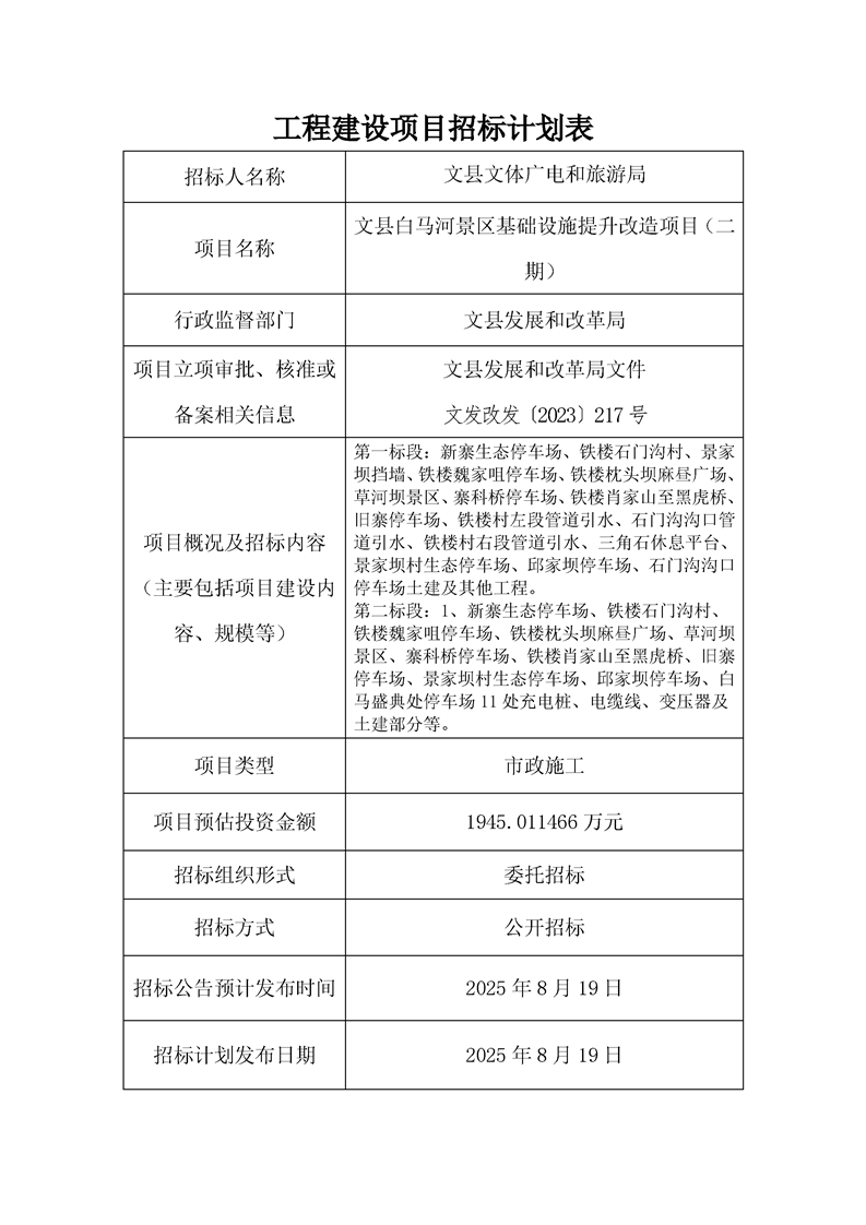 文縣白馬河景區(qū)基礎(chǔ)設(shè)施提升改造項(xiàng)目(二期)