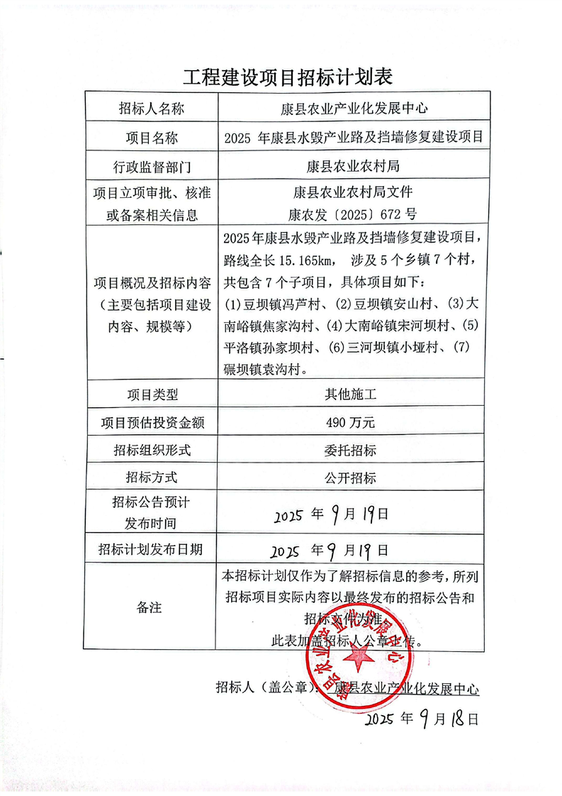 2025 年康縣水毀產(chǎn)業(yè)路及擋墻修復(fù)建設(shè)項目