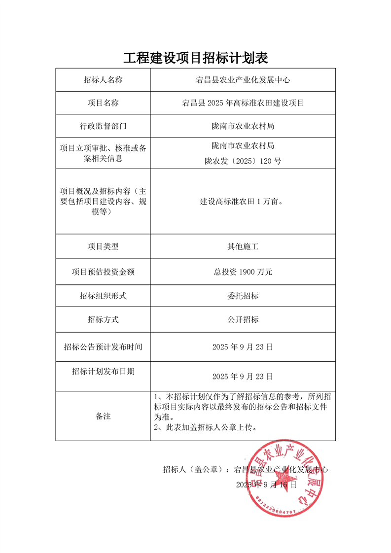 宕昌縣2025年高標準農(nóng)田建設(shè)項目