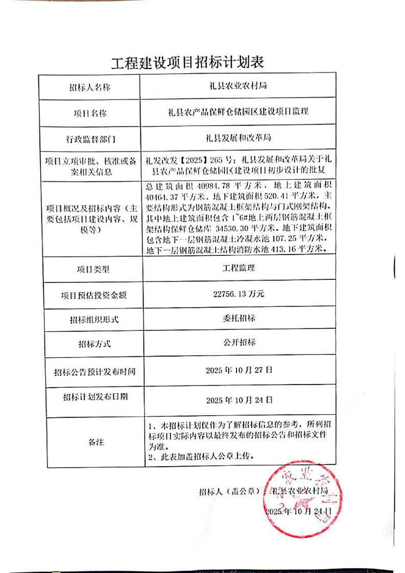 禮縣農(nóng)產(chǎn)品保鮮倉(cāng)儲(chǔ)園區(qū)建設(shè)項(xiàng)目監(jiān)理