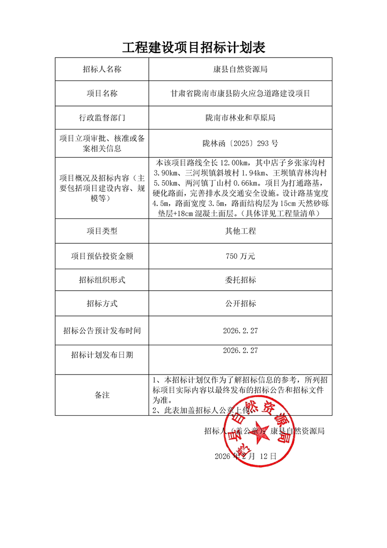 甘肅省隴南市康縣防火應(yīng)急道路建設(shè)項目