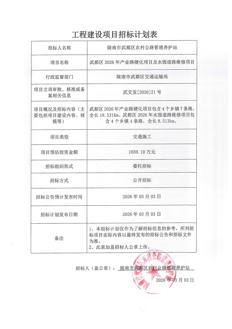 武都區(qū)2026年產(chǎn)業(yè)路硬化項目及水毀道路維修項目