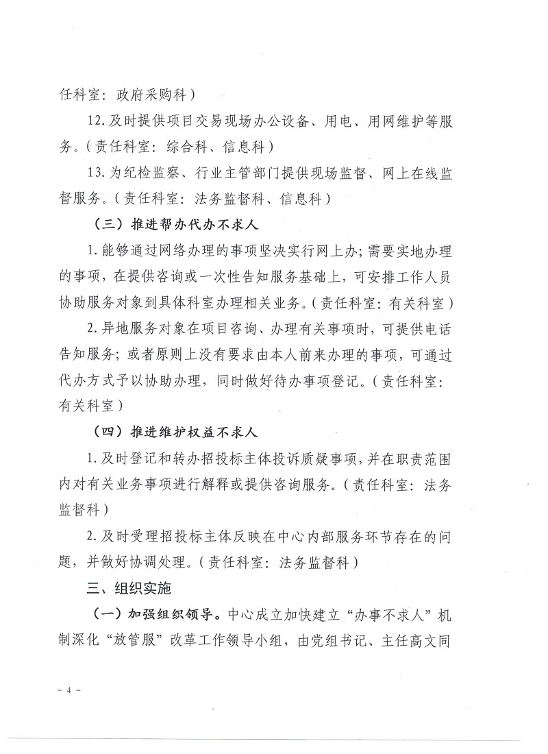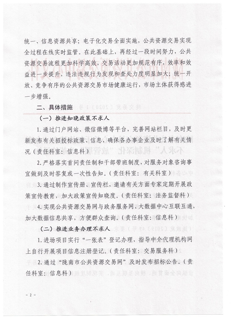 隴南市公共資源交易中心關(guān)于加快建立“辦事不求人”機制深化“放管服”改革的通知
