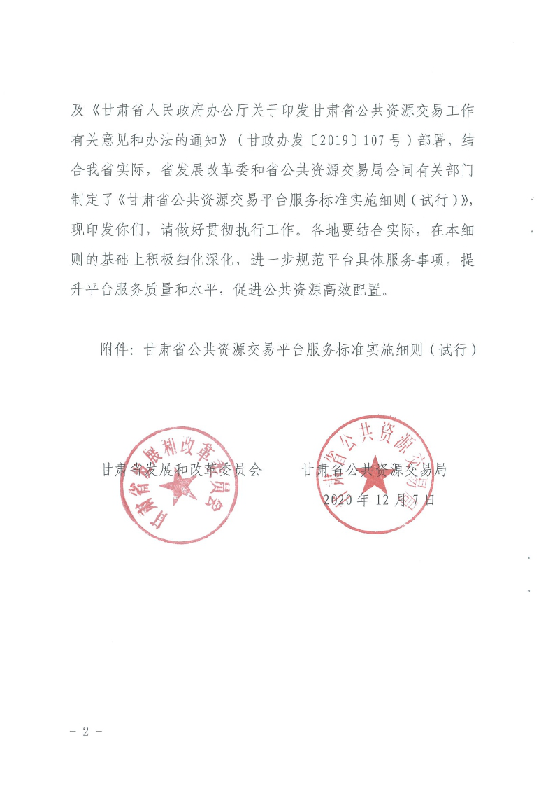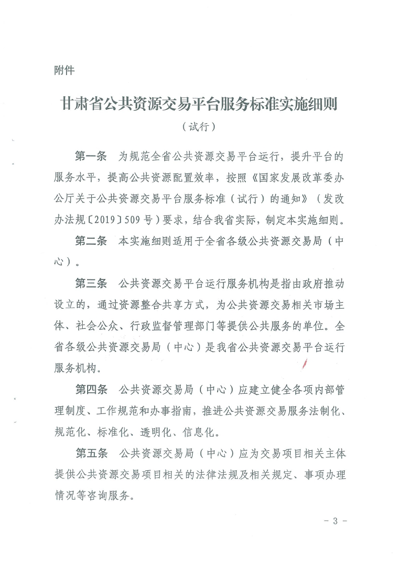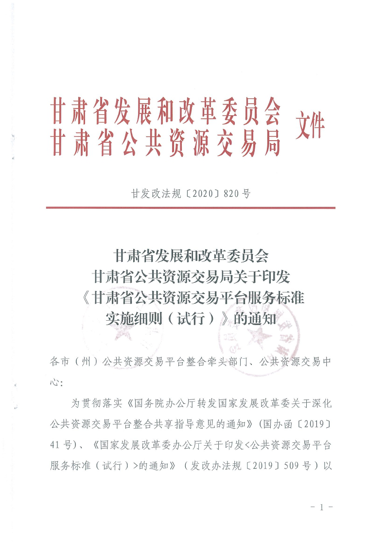 省發(fā)改委省公共資源交易局關(guān)于印發(fā)《甘肅省公共資源交易平臺服務標準實施細則(試行)》的通知